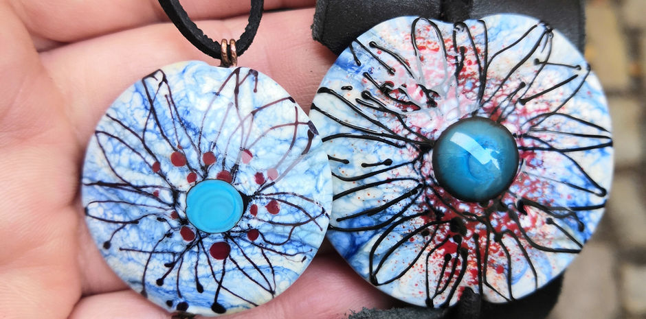 V dílně Atelieru Pimpinella vznikají převážně vinutky (skleněné korálky), díky naší dlouholeté tradici se nebojíme vyrábět i mnohem náročnější a sofistikované šperky. Výjimkou nejsou ani individuální a zakázková výroba šperků a skleněných výrobků. Podívejte se v galerii.